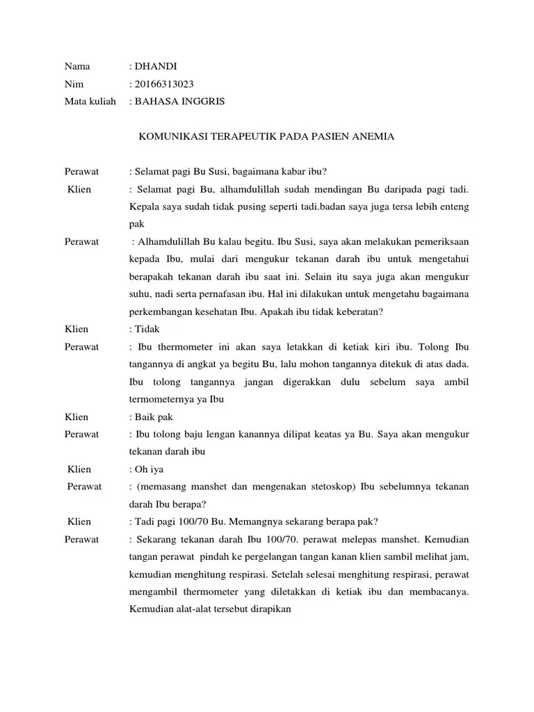 Dialog Komunikasi Terapeutik : Roleplay Komunikasi Terapeutik Terhadap Pasien Pre Dan Post Operasi Apendiksitis 9n0ok7y3y3nv - Komunikasi terapeutik (fissure sealant) a.fase pra interaksi a.evaluasi diri 1.perawat gigi mempunyai pengetahuan tentang keperawatan gigi .. Analisis kesantunan berbahasa dalam dialog komunikasi terapeutik antara bidan dengan ibu hamil. Itulah yang dapat kami bagikan terkait contoh dialog komunikasi terapeutik pada anak. Di ruang keperawatan terdapat sebuah meja dan 2 buah kursi. Komunikasi terapeutik (fissure sealant) a.fase pra interaksi a.evaluasi diri 1.perawat gigi mempunyai pengetahuan tentang keperawatan gigi . Teknik komunikasi terapeutik yang digunakan dalam role play komunikasi terapeutik pada pasien di igd adalah.